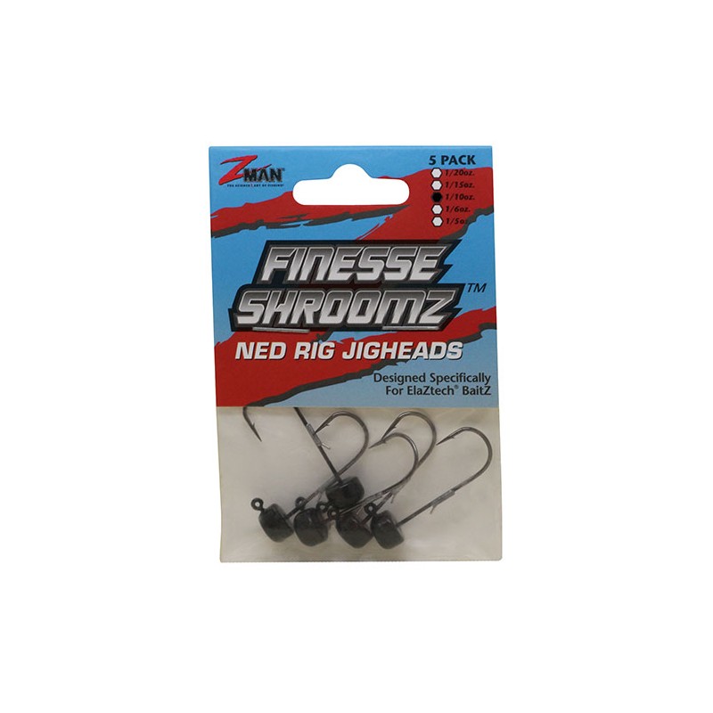 Designed to be paired with the Finesse TRD, Finesse ShadZ, TRD TubeZ or Hula StickZ to create the perfect Ned Rig, the Finesse ShroomZ jighead sports a custom wire keeper welded onto the hook shank that not only makes rigging a breeze, but holds ElaZtech baits securely without the need for gluing. The unique keeper, coupled with the extreme durability of 10X Tough ElaZtech, creates a near bulletproof package that will fish-after-fish for hours on-end without the need for re-rigging.