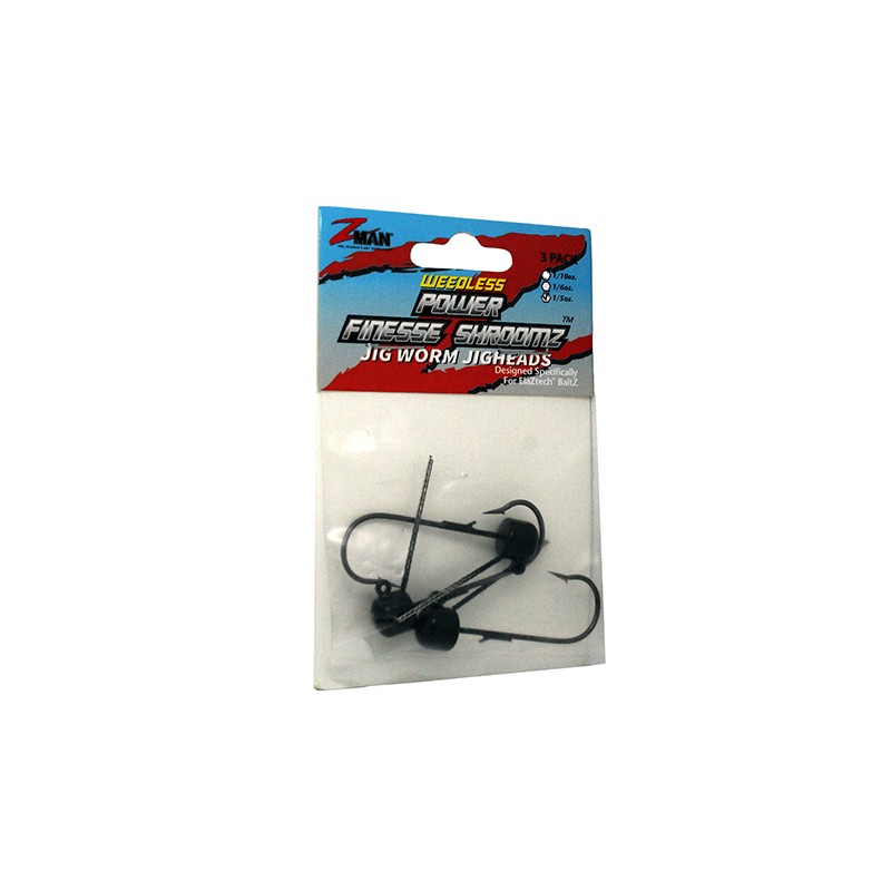 A weedless version of Z Man popular mushroom-shaped jighead, the Finesse ShroomZ Weedless features a double stainless multi-strand wire weedguard that makes it possible to employ Midwest Finesse tactics around grass, brush, and laydowns without constant snagging and fouling. Also armed with Z-Man's exclusive welded wire keeper to make rigging with ElaZtech baits fast and easy, these jigheads pair perfectly with baits like the Finesse TRD, Hula StickZ, TRD TubeZ and Finesse ShadZ to create the perfect Ned Rig!