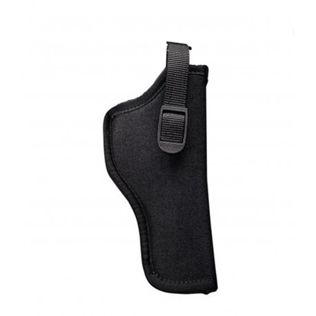 Patented SIDEKICK laminate of Cordura nylon, water-proof closed-cell foam padding, smooth nylon lining. Memory quality of laminate molds to the gun for an excellent fit, yet returns to original shape when gun is removed. Medium high ride design...double-slotted molded belt loop lets you wear it on holster belt up to 2 1/4" wide or a standard trouser belt. Tough nylon web retention strap has combination adjustment buckle and sturdy snap for easy draw. Patented nylon web sight channel.