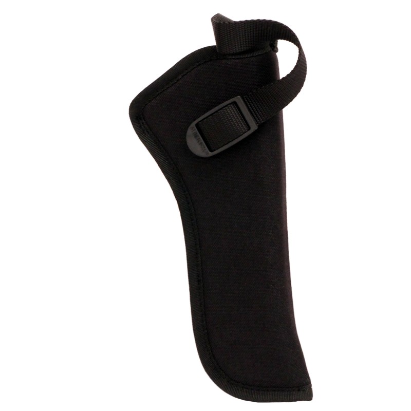 Patented SIDEKICK laminate of Cordura nylon, water-proof closed-cell foam padding, smooth nylon lining. Memory quality of laminate molds to the gun for an excellent fit, yet returns to original shape when gun is removed. Medium high ride design...double-slotted molded belt loop lets you wear it on holster belt up to 2 1/4" wide or a standard trouser belt. Tough nylon web retention strap has combination adjustment buckle and sturdy snap for easy draw. Patented nylon web sight channel.