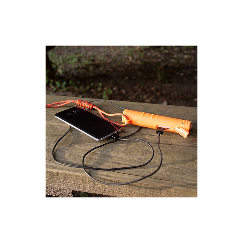 The lightweight and compact TekFire Charge Fuel-Free Lighter allows for quick and easy fire starting and features an emergency power bank to charge your phone and other mobile devices on the go. Windproof, flameless, and electronic, it requires no butane fuel or adjustments for altitude. The included ParaTinder Utility Cord wrist lanyard can be unwound for about 3' of all-purpose paracord with an added single tinder thread. The lighter also comes with a USB cord for easy recharging from any USB port.