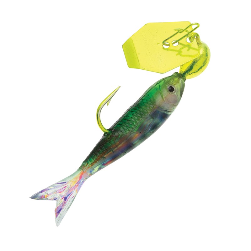 Combining a holographic soft plastic minnow body with a downsized version of Z-Man's exclusive ChatterBait creates a unique bait that is deadly on panfish, trout, crappie, bass, and more! On the retrieve, these baits feature an exaggerated side-to-side motion and distinctive vibration that gamefish just can't resist. And when you combine that action with a multi-hue holographic flash, you've got a fish-catching combination that knows no equal!