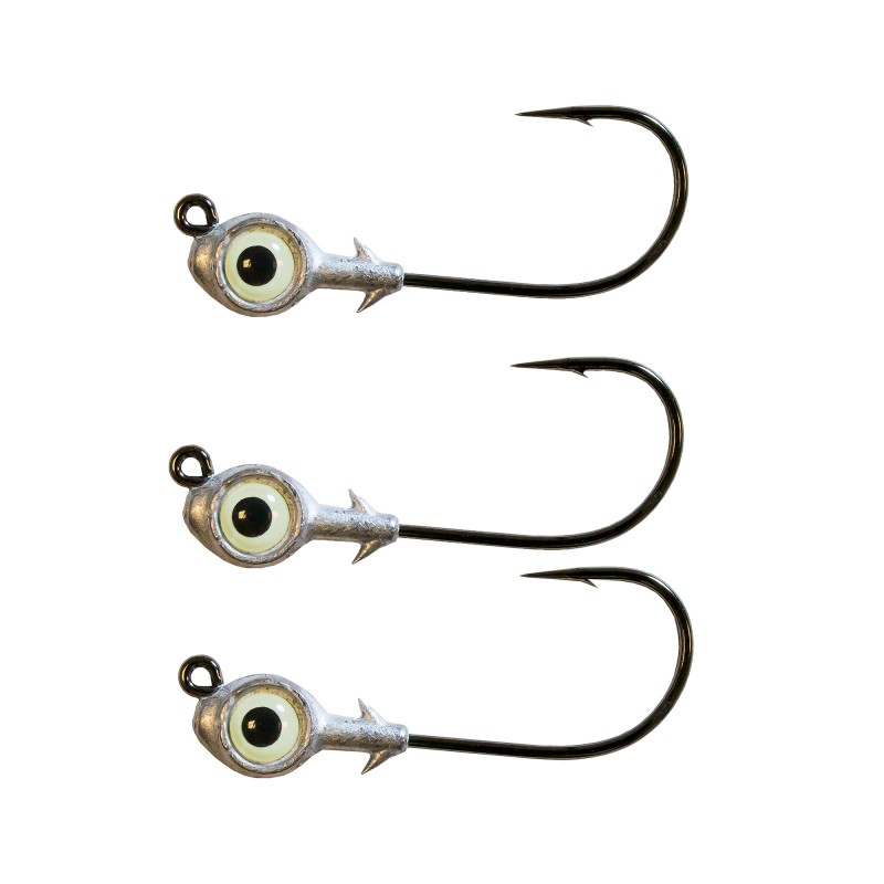 Designed around the knowledge that gamefish target the eyes of baitfish, these jigheads sport the largest eye of any jighead in their class. Built on heavy-duty 4/0 Mustad UltraPoint hooks, the 30 degree neck bend of the hook places the eye at the front of the jighead, reducing snagging and fouling on shallow grass and oyster laden flats that redfish inhabit. Redfish Eye jigheads are sized to pair perfectly with a variety of 4" and 5" soft plastics, including Z-Man's Scented PaddlerZ, Scented Jerk ShadZ, StreakZ, DieZel MinnowZ, and SwimmerZ.