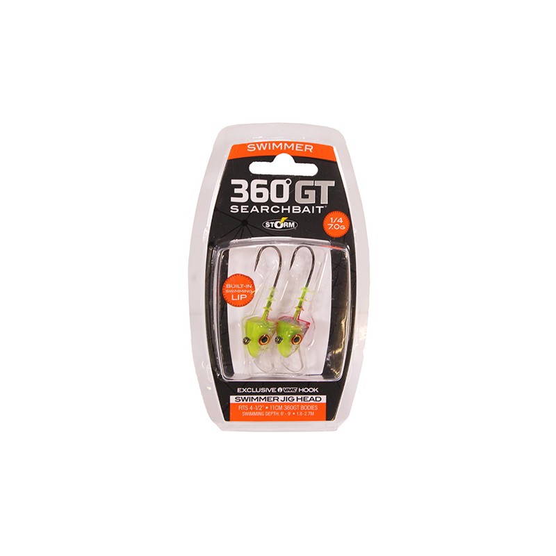 360GT Swimmer Jig Head has a molded swimming lip that adds crankbait action and depth control. Exclusive VMC Coastal Black hook has extended leg on line tie to further enhance action. 60° angle keeps lure swimming in the perfect position. Life-like rattling jig head and body fit precisely, with color patterns that perfectly match regional forage.