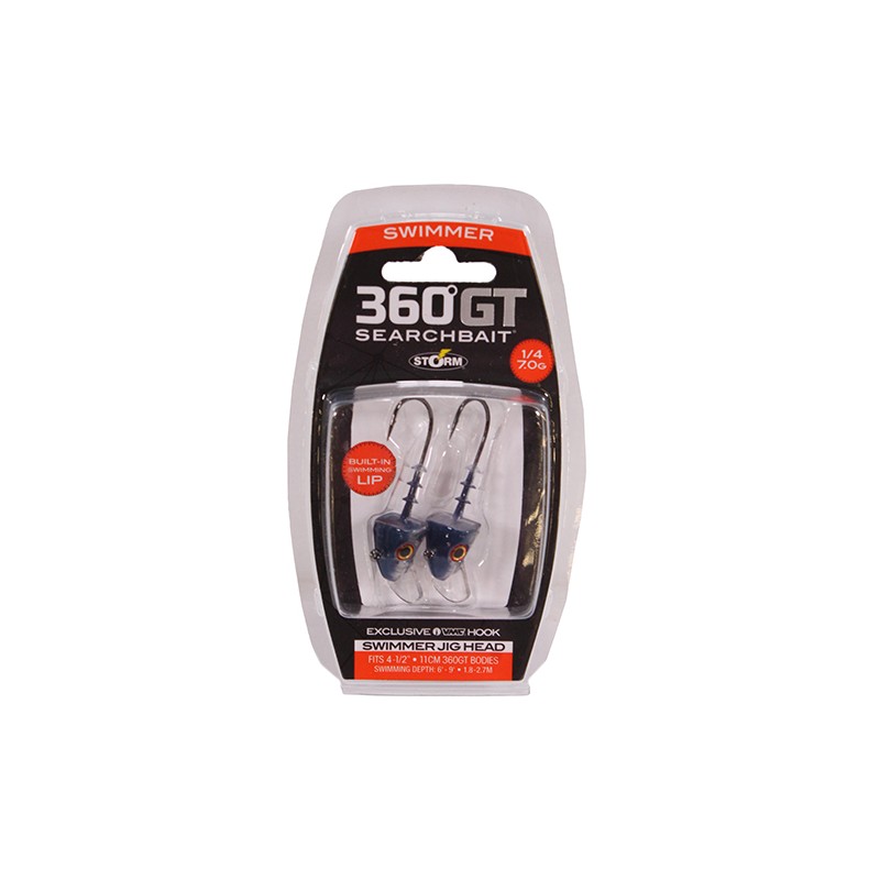 360GT Swimmer Jig Head has a molded swimming lip that adds crankbait action and depth control. Exclusive VMC Coastal Black hook has extended leg on line tie to further enhance action. 60° angle keeps lure swimming in the perfect position. Life-like rattling jig head and body fit precisely, with color patterns that perfectly match regional forage.