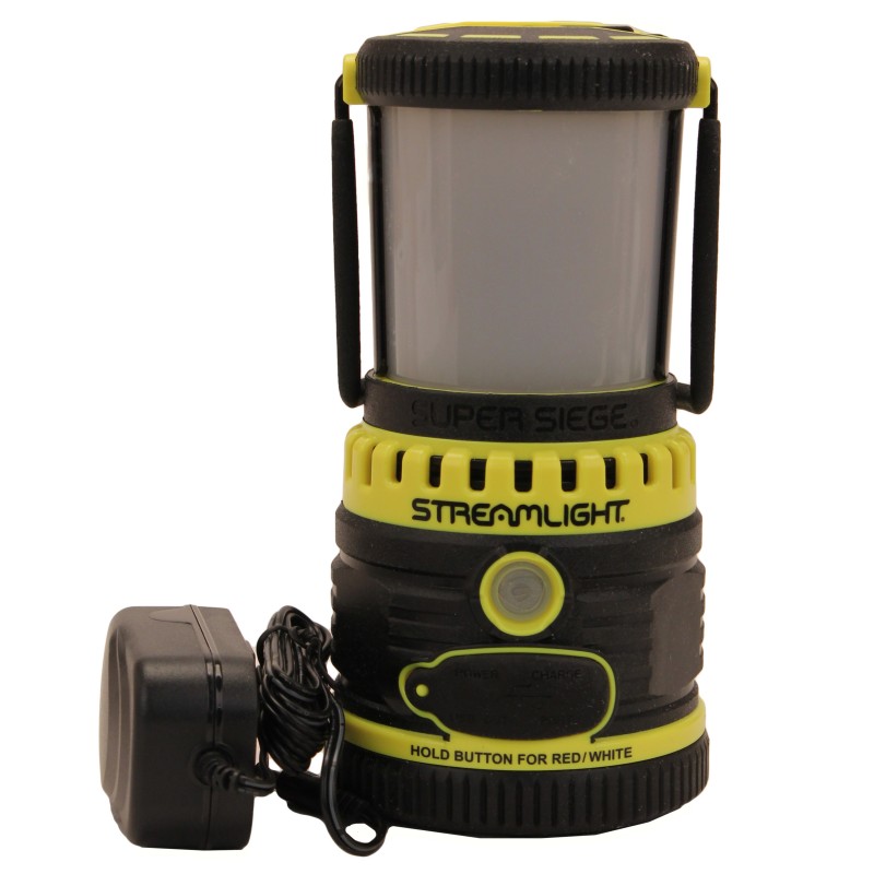 The Super Siege is rechargeable using an AC power cord, and is also equipped with an auxiliary USB port for recharging personal electronic devices and other Streamlight products. Its 8800mAH battery capacity gives up to 4 full charges for most smartphones and up to 8 full charges for most Streamlight USB-rechargeable flashlights.