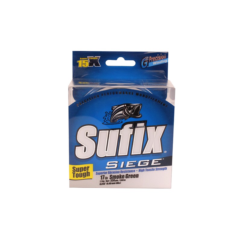Sufix Siege has superior casting distance with pinpoint accuracy due to its proprietary extrusion process. It has up to 15X greater abrasion resistance then other lines on the market and has exceptional knot strength and smooth handling. With exclusive G² Precision Winding (4-20 lb; excludes 3000 yd. spools) line memory is virtually eliminated. 25 and 30 lb test only available in 250 yards.