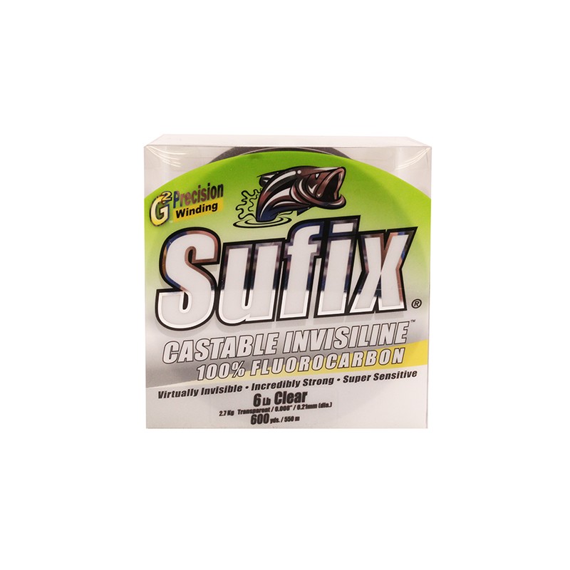 Sufix Castable Invisiline100% Fluorocarbon casts like mono and is virtually invisible. It is resistant to ultra violet rays that can damage lines, it is incredibly strong, abrasion resistant and sensitive. There is a very low-stretch index for optimal hook setting power and sinks 4 times faster than traditional nylon lines for getting your presentation to the strike zone faster. Castable Invisilinehas exceptional handling for both spinning and casting reels and the exclusive G² Precision Windingvirtually eliminates line memory.