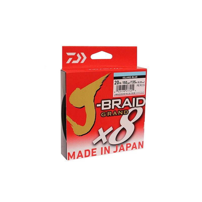 Introducing J-BRAID x8 GRAND, the Ultimate Braid in Daiwas J-Braid Family. Strong, and resistant to abrasion yet well-bodied enough to lay smoothly on the spool. J-BRAID x8 GRAND is spun with Izanas, a state-of-the-art new material utilizing 8 Carriers. These 8 carriers are supple yet with Izanas theyre 4 times as abrasion resistant as a typically tougher 4 carrier.