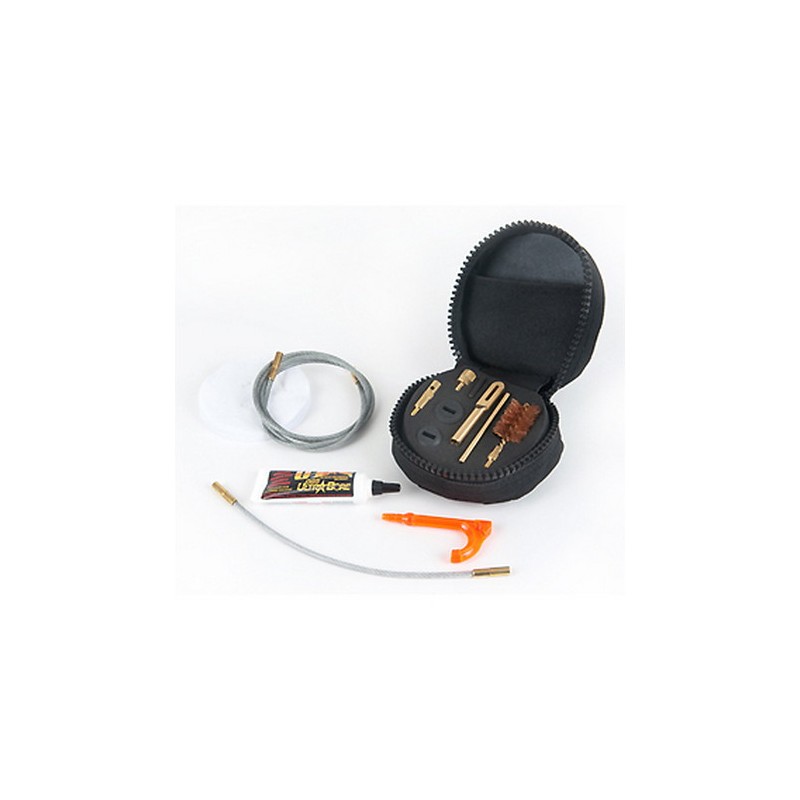 This 1/2 lb. cleaning system replaces over 3 lbs. of conventional gear. This is the first shotgun cleaning product to clean the chamber, forcing cone and bore completely in a one step operation. If the shotgun is cleaned after each use, lead and plastic in the bore are a thing of the past. The shotgun bore can be cleaned on the line while shooting without disassembly. This is made possible with components such as the Memory-Flex cleaning rods, a 12/10 gauge bore brush, all-caliber patches, and the Otis O85 Ultra Bore Solvent. The Patch Savers make it easy for your swab to fit any size shotgun from .410 to 12/10 gauge, and they help provide a snug 360 degree fit as the patch travels through the bore and out the muzzle. Also included is a T-handle bar, a thread connector, and a bore reflector/flag safety. By using the Shotgun Cleaning System, fast and accurate cleaning can be accomplished in minutes.