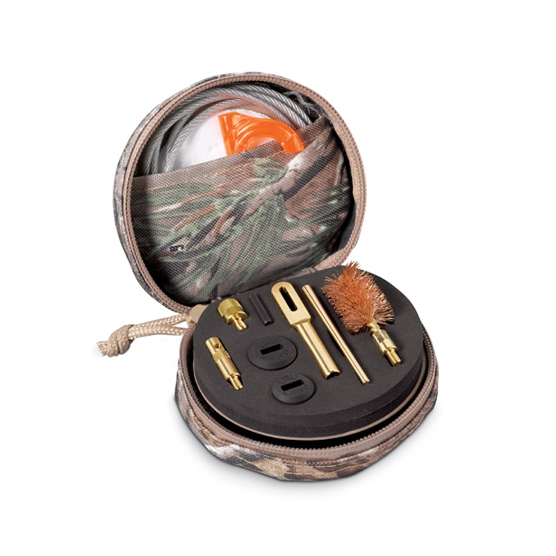 Upland bird hunting is far from an idyllic fair-weather walk through the aspens with a dog for quail. Sometimes it's 12-hour days and unexpected storms while busting thick brush with dirty guns and dirtier dogs. Give your shotgun a fast, thorough cleaning in the field or back at the tailgate with this lightweight, portable system. Specifically designed for 12, 20 and 28 gauge shotguns.
