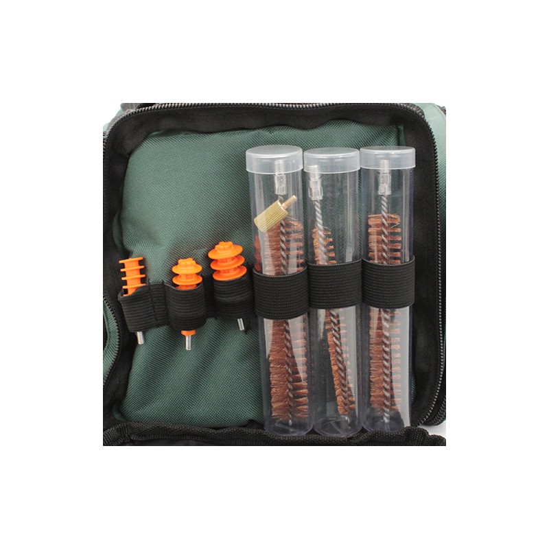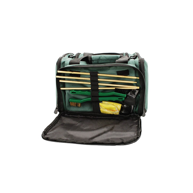 The Remington Squeeg-E Shotgun Cleaning System is tailored to the shotgun enthusiast, combining the benefits of the revolutionary Rem Squeeg-E cleaning system with innovative, shotgun-specific cleaning tools and chemicals. The large, heavy-duty, water-resistant bag features four large pockets on each side and is sized and reinforced to carry up to six shotshell boxes. There is also a storage net in the rear pocket that can be used to carry choke wrenches, extra chokes or other gear.