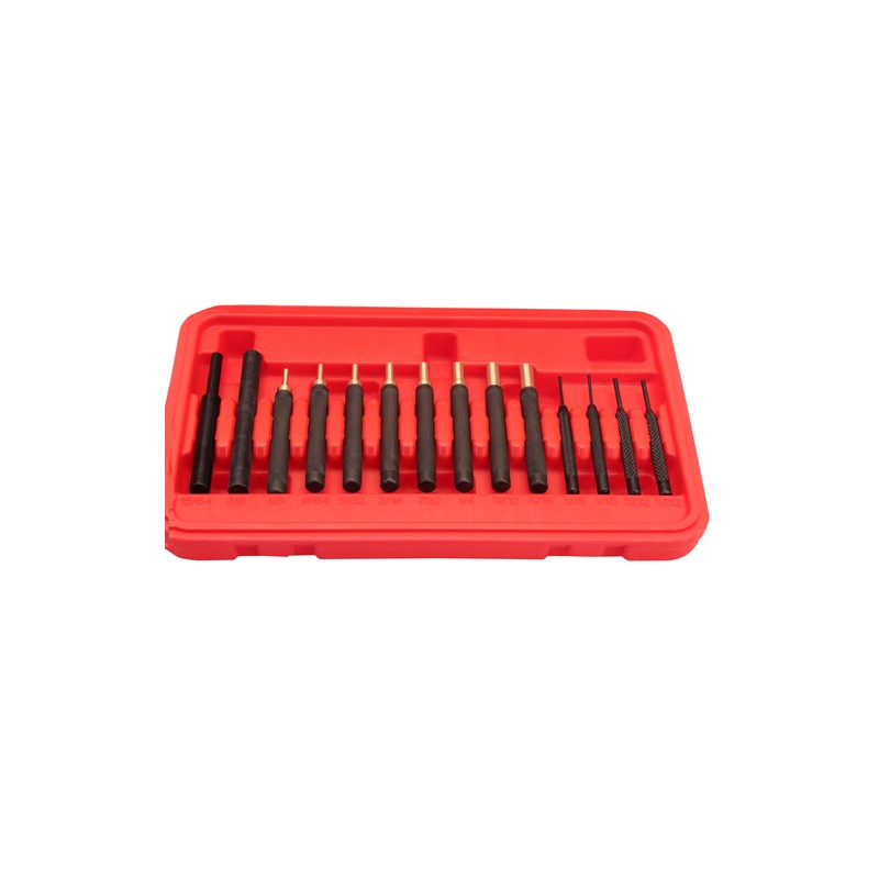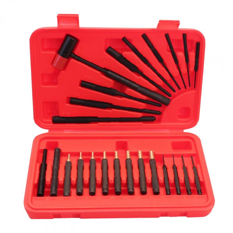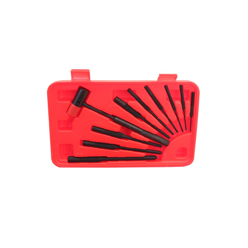 - 9 Steel Roll Pin Punches (5/16", 1/4", 7/32", 3/16", 5/32", 1/8", 3/32", 5/64", and 1/16")