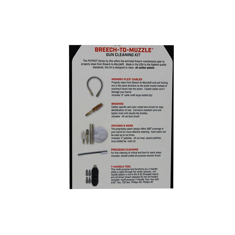 The Patriot Series by Otis offers the essential firearm maintenance gear to properly clean from Breech-to-Muzzle. Made by Otis to the highest standards, this kit is designed to clean .40 caliber pistols.