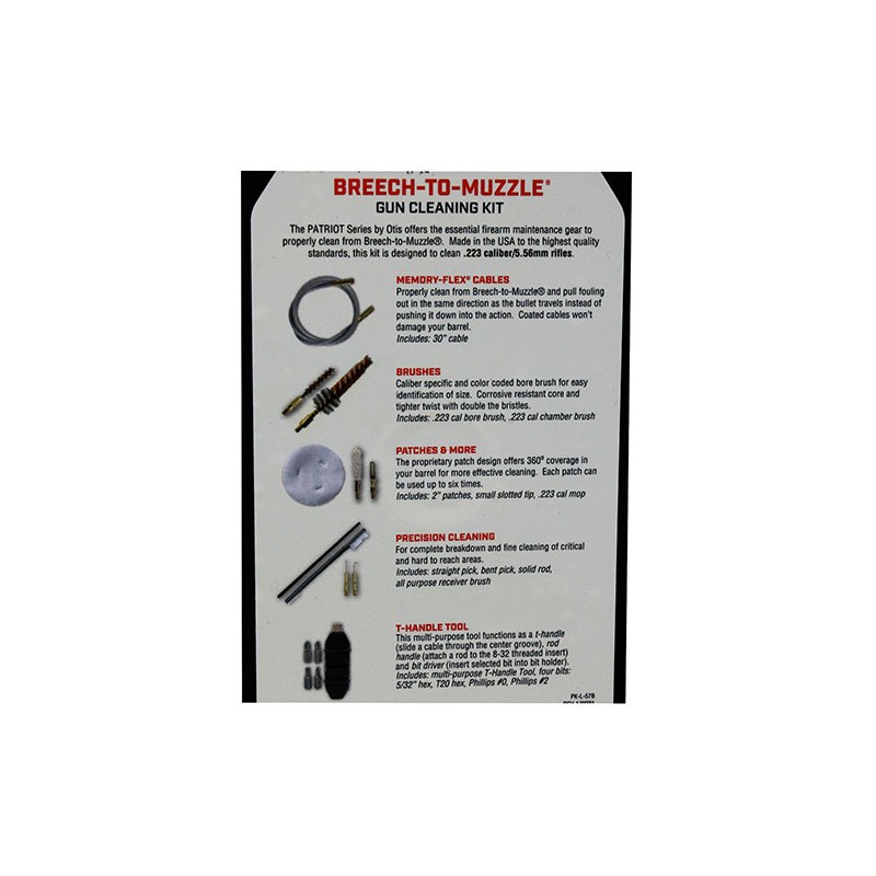 The Patriot Series by Otis offers the essential firearm maintenance gear to properly clean from Breech-to-Muzzle. Made by Otis to the highest standards, this kit is designed to clean .223/5.56mm fifles.