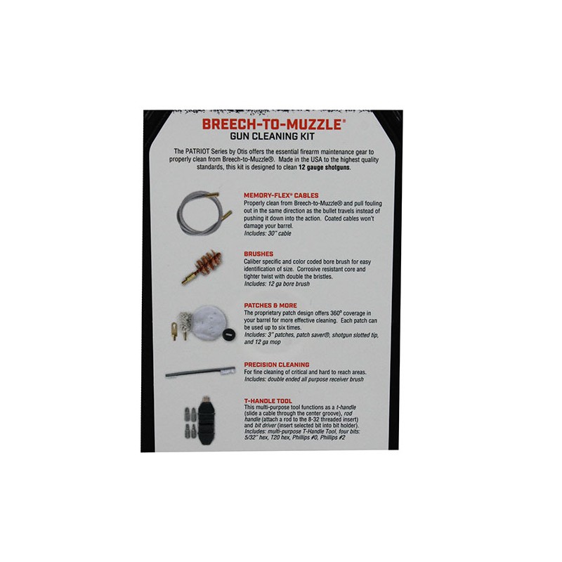 The Patriot Series by Otis offers the essential firearm maintenance gear to properly clean from Breech-to-Muzzle. Made by Otis to the highest standards, this kit is designed to clean 12 gauge shotguns.