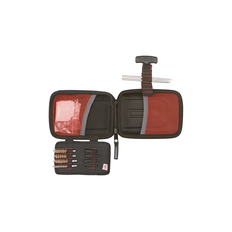 The Krome Compact Handgun Cleaning Kit by Allen is a portable solution for keeping your handgun clean, no matter where you are. The small format ensures you have all the components necessary for cleaning your firearm at the range, in the field, or at home. For use with .22, .357/9mm/.380, .40, and .45 calibers, the kit comes in a neatly organized, compact zippered pouch, and all components are marked with their calibers. Inside the case, youll find the following items: