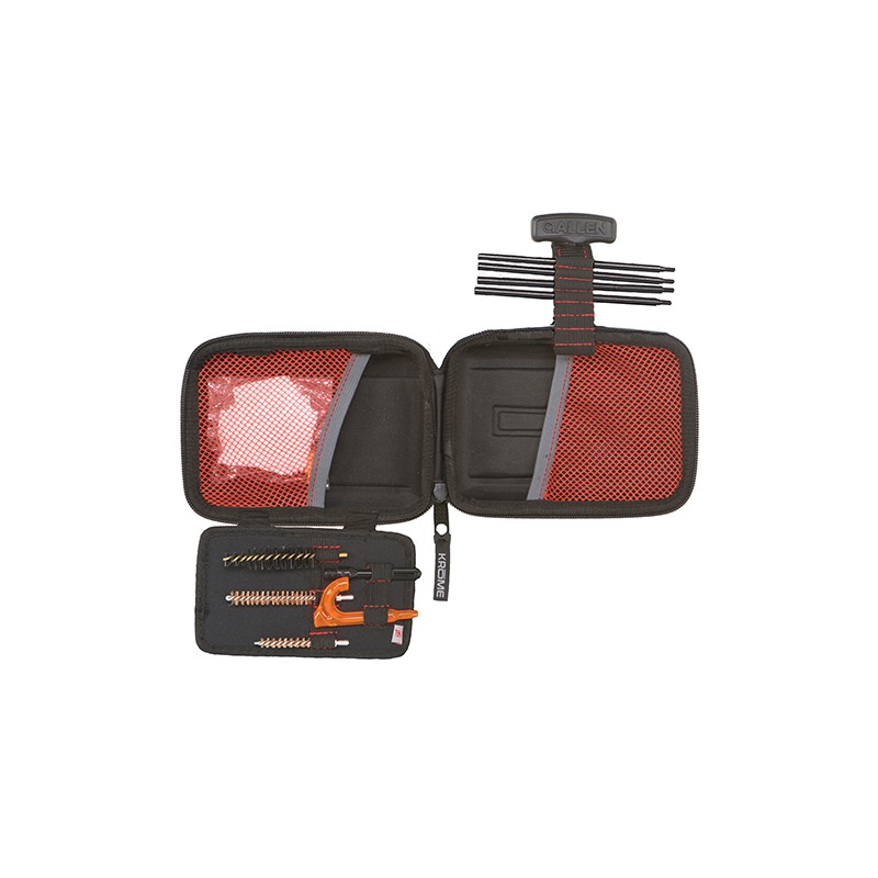 The Krome Compact Tactical Cleaning Kit by Allen is a portable solution for keeping your MSR or tactical shotgun clean, no matter where you are. The small format ensures you have all the components necessary for cleaning your tactical firearm at the range, in the field, or at home. For use with .223/5.56, .30/7.62, and 12 gauge firearms, the kit comes in a neatly organized, compact zippered pouch, and all components are marked with their calibers. Inside the case, youll find the following items: