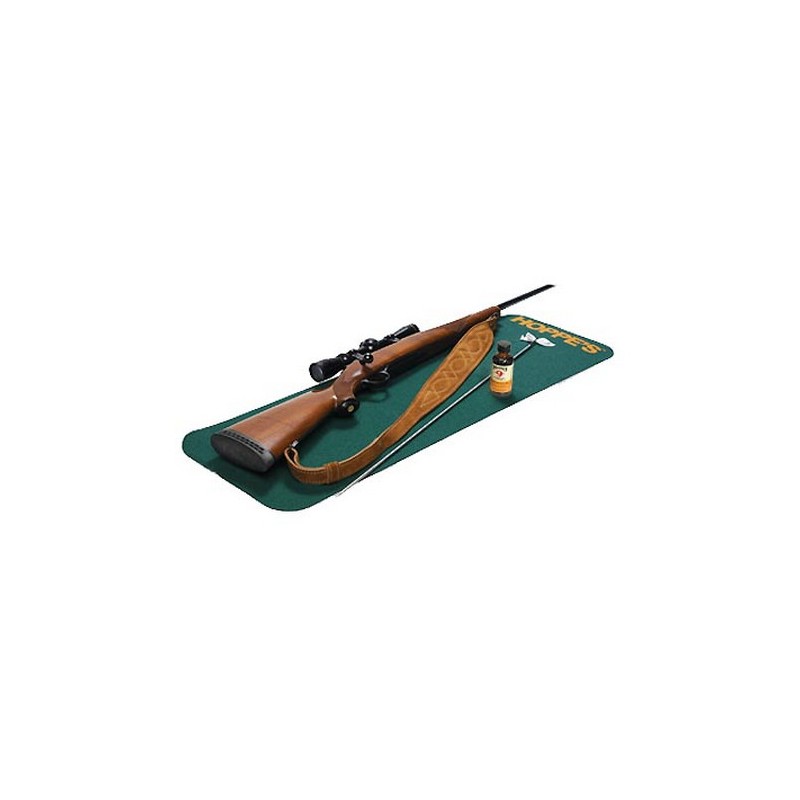 These attractive hunter green pads protect firearms and working surfaces from scratches and spills. Soft acrylic material absorbs 8 times its weight in fluids. Non-slip vinyl backing prevents fluid spills from soaking through onto work surface, allowing time to wipe up and wash pad. Simply machine wash and dry.
