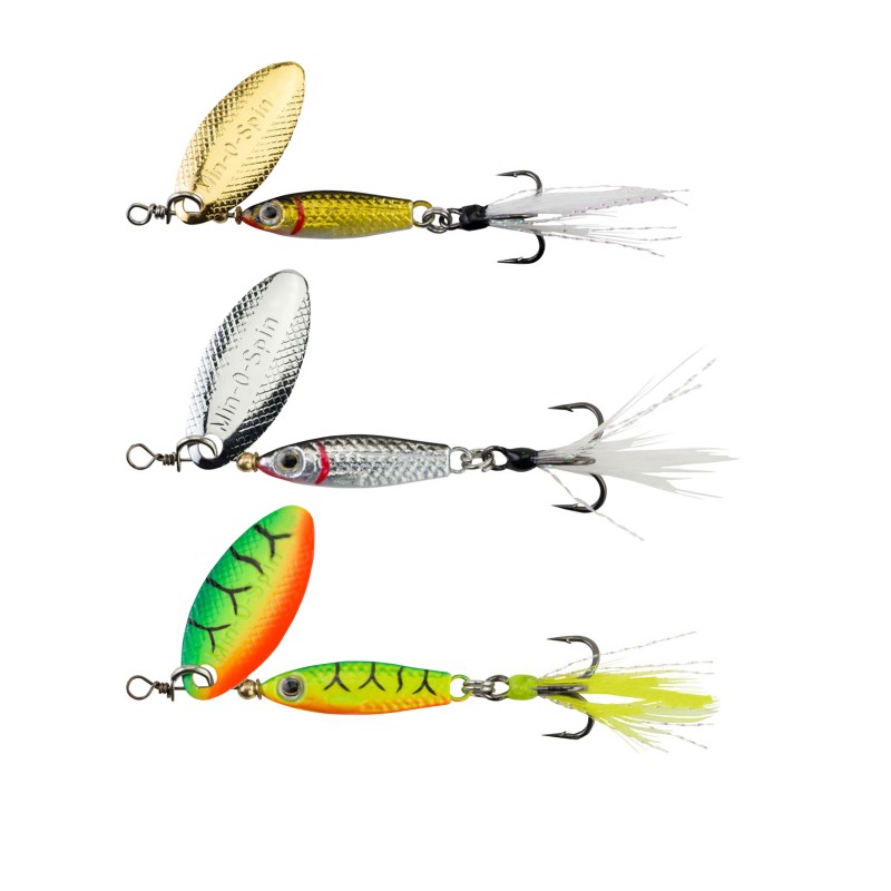 Min-O-Spins resemble small fleeing shiners that can be cast and retrieved or trolled for all predatory fish.