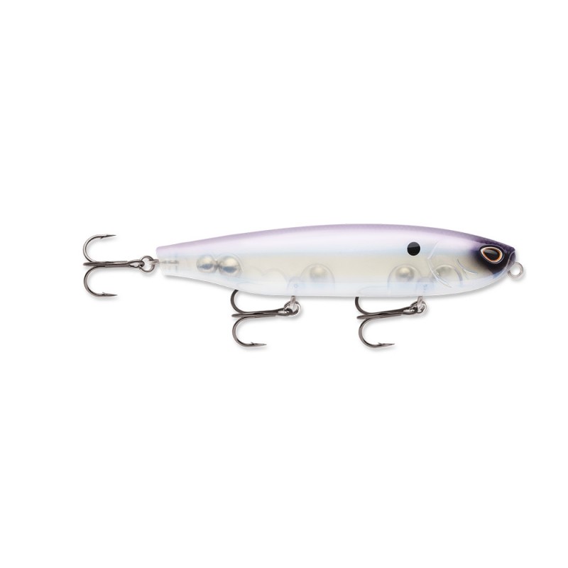 Features a responsive walking action that delivers a longer glide and powerful wake even in choppy water conditions. Low roll action keeps the hooks below the bait at all times as it walks to increase positive hook-up percentage. Triple rotated hook hangers nest the hooks close to the body for improved action and allow for larger size hooks. Multiple ultiple rattles deliver a cadence sound with variable pitch frequency mimicking schooling baitfish and are perfectly placed for long casts.