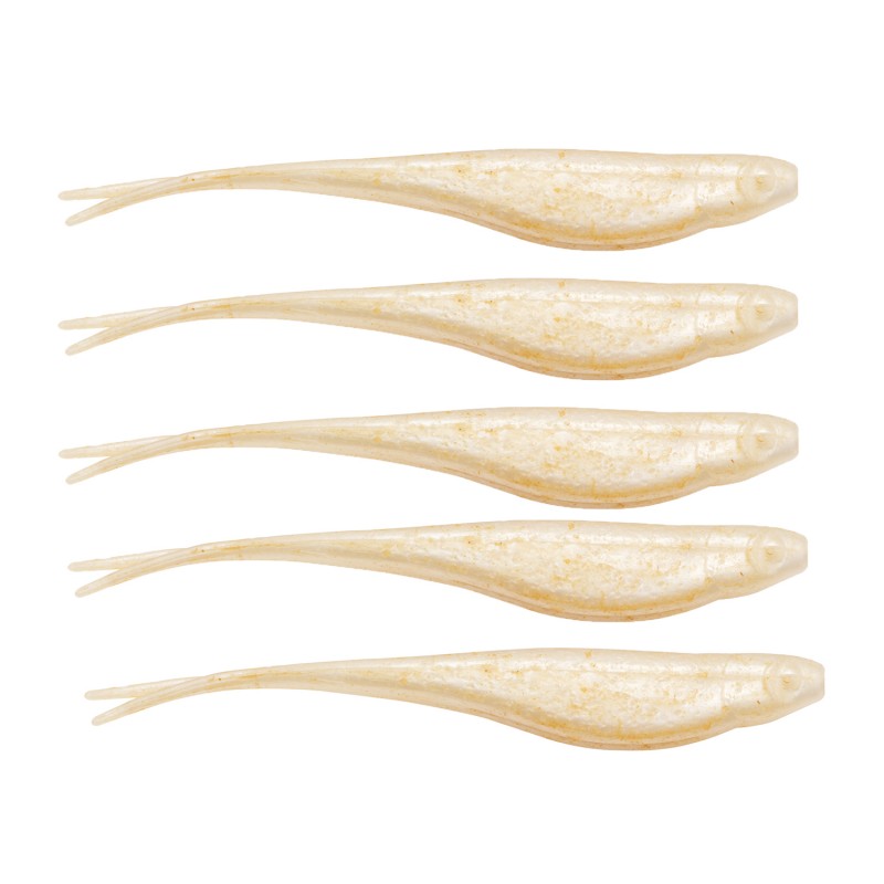 - Salt-impregnated, split-tail jerk shad body with hook slot for weedless rigging and solid hooksets