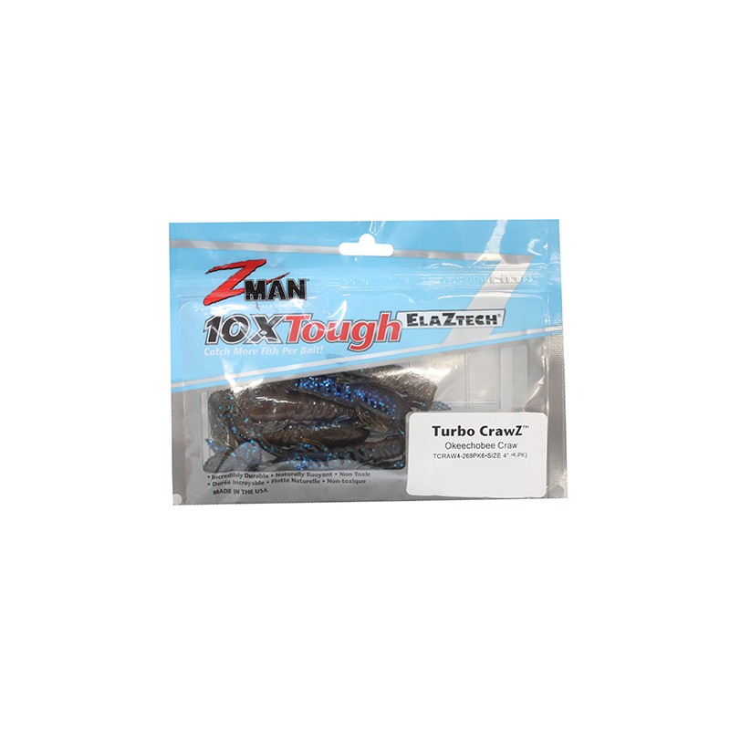 Adaptive, versatile fishermen will find the Turbo CrawZ to be the ultimate swim jig or ChatterBait trailer, as well as a deadly soft plastic companion whether Texas rigging, Carolina rigging, flipping, or buzzing the top. Incredibly durable and lifelike, the bait's specially designed Turbo ClawZ thump at even the slightest rod movement or reel crank. As important, Z-Man's super buoyant ElaZtech material allows the ClawZ to rise up off the bottom in a natural defensive posture.