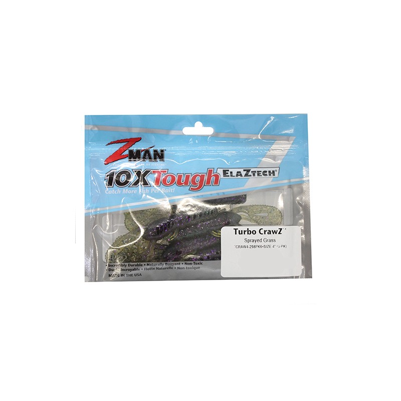 Adaptive, versatile fishermen will find the Turbo CrawZ to be the ultimate swim jig or ChatterBait trailer, as well as a deadly soft plastic companion whether Texas rigging, Carolina rigging, flipping, or buzzing the top. Incredibly durable and lifelike, the bait's specially designed Turbo ClawZ thump at even the slightest rod movement or reel crank. As important, Z-Man's super buoyant ElaZtech material allows the ClawZ to rise up off the bottom in a natural defensive posture.