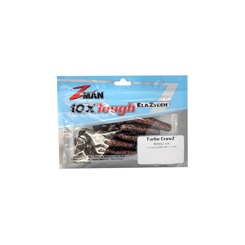 Adaptive, versatile fishermen will find the Turbo CrawZ to be the ultimate swim jig or ChatterBait trailer, as well as a deadly soft plastic companion whether Texas rigging, Carolina rigging, flipping, or buzzing the top. Incredibly durable and lifelike, the bait's specially designed Turbo ClawZ thump at even the slightest rod movement or reel crank. As important, Z-Man's super buoyant ElaZtech material allows the ClawZ to rise up off the bottom in a natural defensive posture.