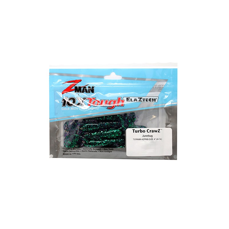 Adaptive, versatile fishermen will find the Turbo CrawZ to be the ultimate swim jig or ChatterBait trailer, as well as a deadly soft plastic companion whether Texas rigging, Carolina rigging, flipping, or buzzing the top. Incredibly durable and lifelike, the bait's specially designed Turbo ClawZ thump at even the slightest rod movement or reel crank. As important, Z-Man's super buoyant ElaZtech material allows the ClawZ to rise up off the bottom in a natural defensive posture.