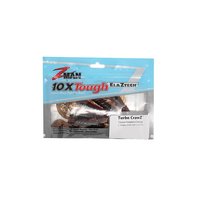 Adaptive, versatile fishermen will find the Turbo CrawZ to be the ultimate swim jig or ChatterBait trailer, as well as a deadly soft plastic companion whether Texas rigging, Carolina rigging, flipping, or buzzing the top. Incredibly durable and lifelike, the bait's specially designed Turbo ClawZ thump at even the slightest rod movement or reel crank. As important, Z-Man's super buoyant ElaZtech material allows the ClawZ to rise up off the bottom in a natural defensive posture.