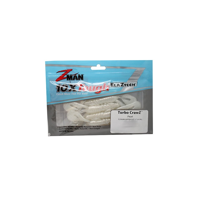 Adaptive, versatile fishermen will find the Turbo CrawZ to be the ultimate swim jig or ChatterBait trailer, as well as a deadly soft plastic companion whether Texas rigging, Carolina rigging, flipping, or buzzing the top. Incredibly durable and lifelike, the bait's specially designed Turbo ClawZ thump at even the slightest rod movement or reel crank. As important, Z-Man's super buoyant ElaZtech material allows the ClawZ to rise up off the bottom in a natural defensive posture.