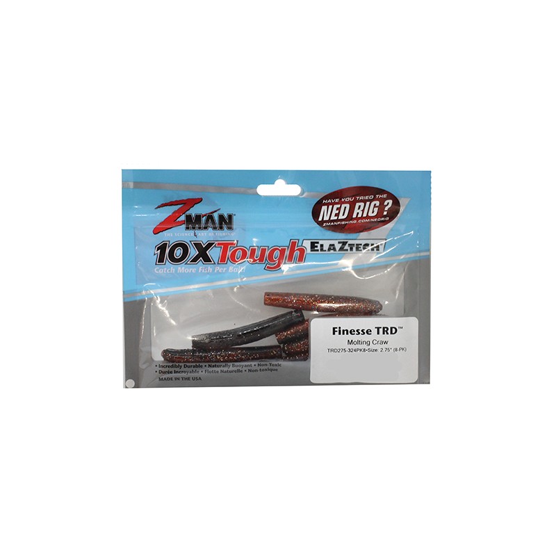 The Finesse TRD (The Real Deal) is designed specifically for the Midwest finesse style of fishing, more commonly known as the Ned Rig, which has been gaining momentum nationwide as a subtle and easy-to-master, yet amazingly effective, presentation. While savvy anglers have been modifying ElaZtech baits for years to create perfect baits for Midwest finesse fishing, the TRD possesses the ideal finesse profile in a ready-to-fish package. A softer ElaZtech formulation and custom salt content allow the TRD to exhibit the precise sink rate, lifelike action, and irresistible feel that expert finesse anglers have learned result in longer holds and increased hook-up ratios.