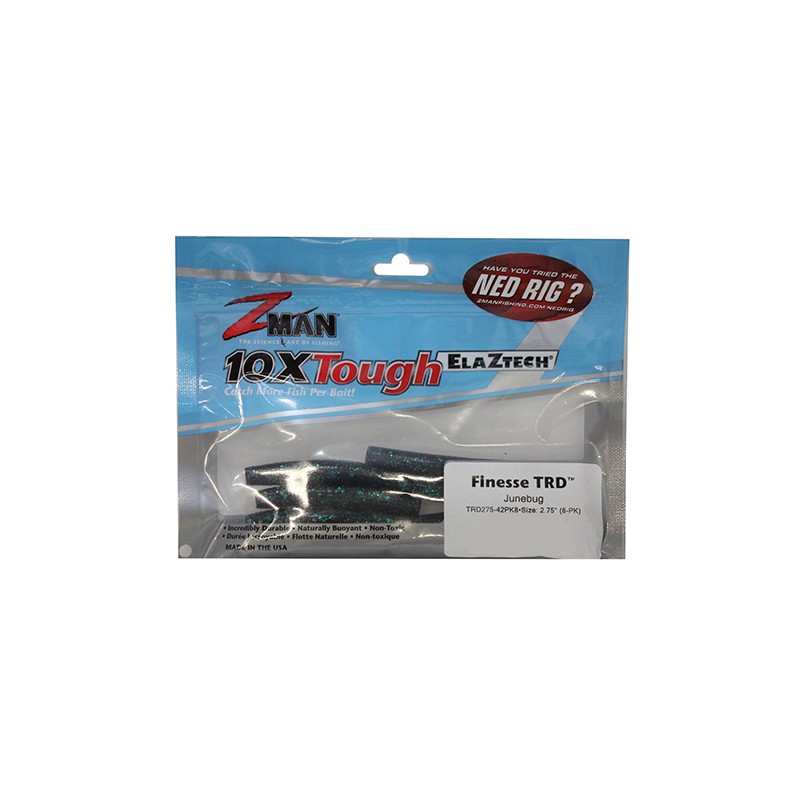 The Finesse TRD (The Real Deal) is designed specifically for the Midwest finesse style of fishing, more commonly known as the Ned Rig, which has been gaining momentum nationwide as a subtle and easy-to-master, yet amazingly effective, presentation. While savvy anglers have been modifying ElaZtech baits for years to create perfect baits for Midwest finesse fishing, the TRD possesses the ideal finesse profile in a ready-to-fish package. A softer ElaZtech formulation and custom salt content allow the TRD to exhibit the precise sink rate, lifelike action, and irresistible feel that expert finesse anglers have learned result in longer holds and increased hook-up ratios.