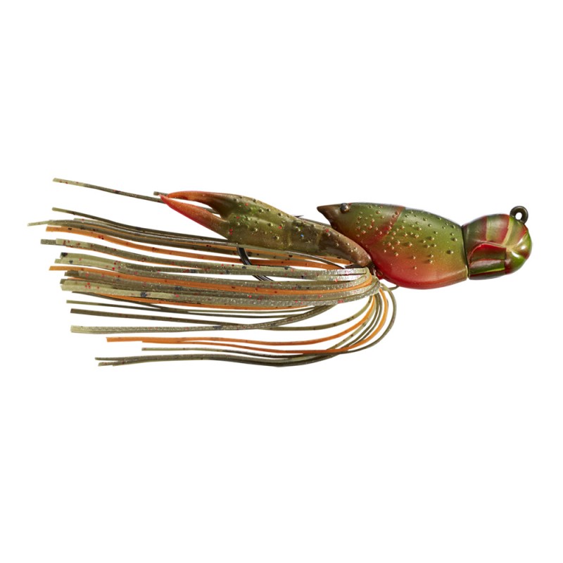 Form meets function in the LiveTarget Hollow Body Craw. By strategically aligning two distinct lure families (hollow bodies and jigs), this lure sets a new standard in Craw imitations. The hollow carapace offers more than just a snag resistant design; anglers can squeeze scent paste inside the hollow cavity for a long lasting trail. The hollow body emits tiny bubbles when the lure lands on bottom. Excellent to use as a football jig or cover jig. Comes with replacement pincers.