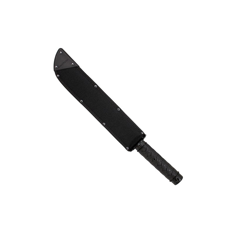 Our Tactical Series of machetes are inspired by our hugely popular and record breaking Warrior Series of Tantos, Wakizashis and Katanas. Available in 3 sizes, each of these fun and distinctive machetes features a wide, curved Tanto point blade and solid steel tsuba made from heat treated 1055 High Carbon Steel with a baked on anti-rust coating. Their broad full tangs are injection over-molded with high impact polypropylene, making them incredibly durable and weather resistant. We re-created the look of a traditional cord wrapped handle, Fuchi and Kashira but used modern materials that will not shrink, warp, tarnish or rot and require very little maintenance. Sharpened right here in our Ventura HQ, each of these Machetes comes complete with a Cor-Ex sheath for carry and storage.