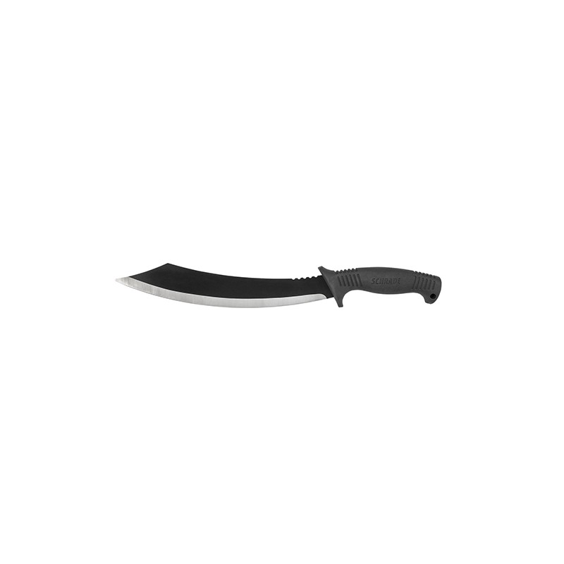 Feel the power of the Schrade SCMACH1 Full Tang machete. This machete features a 12-inch blade made of 3Cr13 stainless steel that can take a beating and still hold up. A piercing point and thumb ramp jimping give the blade extra versatility.