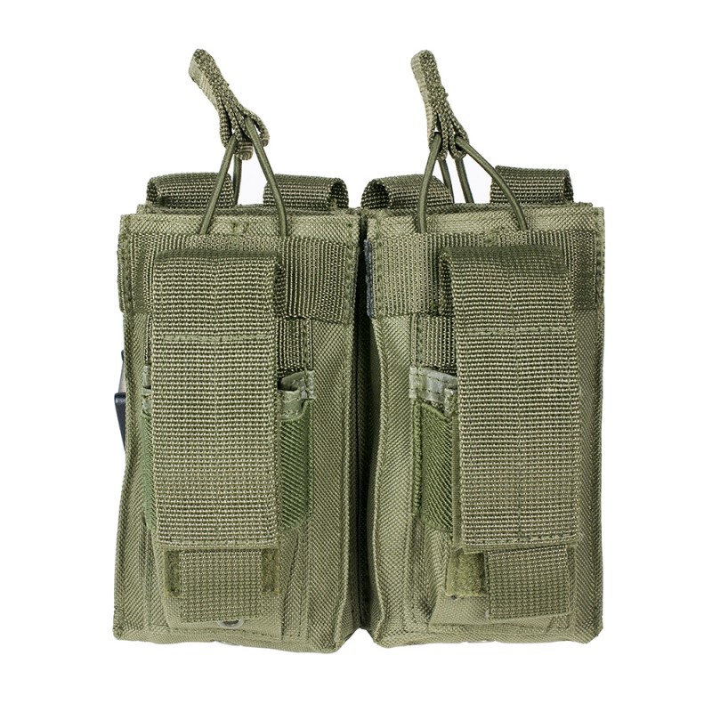 - Two double stack pistol magazine pouches so you can extra magazines for your side arm