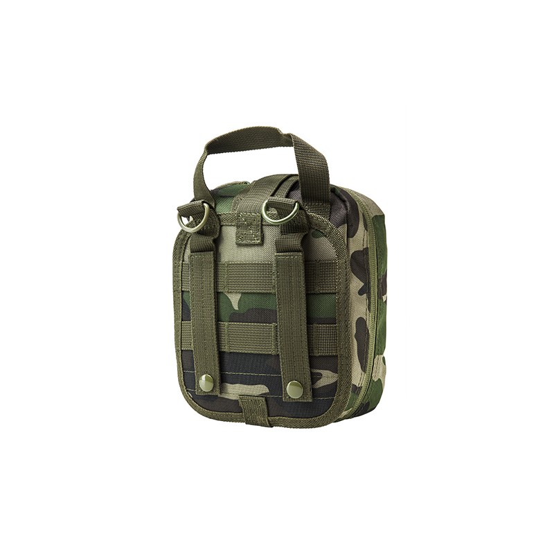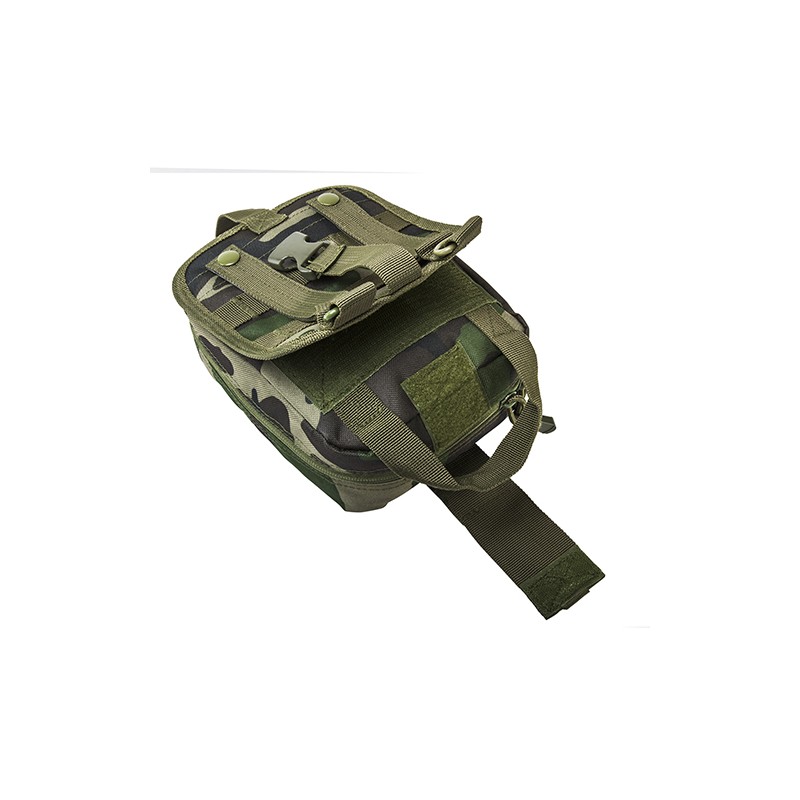 - This MOLLE EMT Pouch has a double zippered main compartment that is a tri-fold design that unfolds into three separate compartments for easy access to your supplies. The flip-out panel has a zippered compartment with see-through mesh material to easily identify the supplies stored in that compartment. The other two panels have several pockets and a dozen elastic straps to organize your supplies.