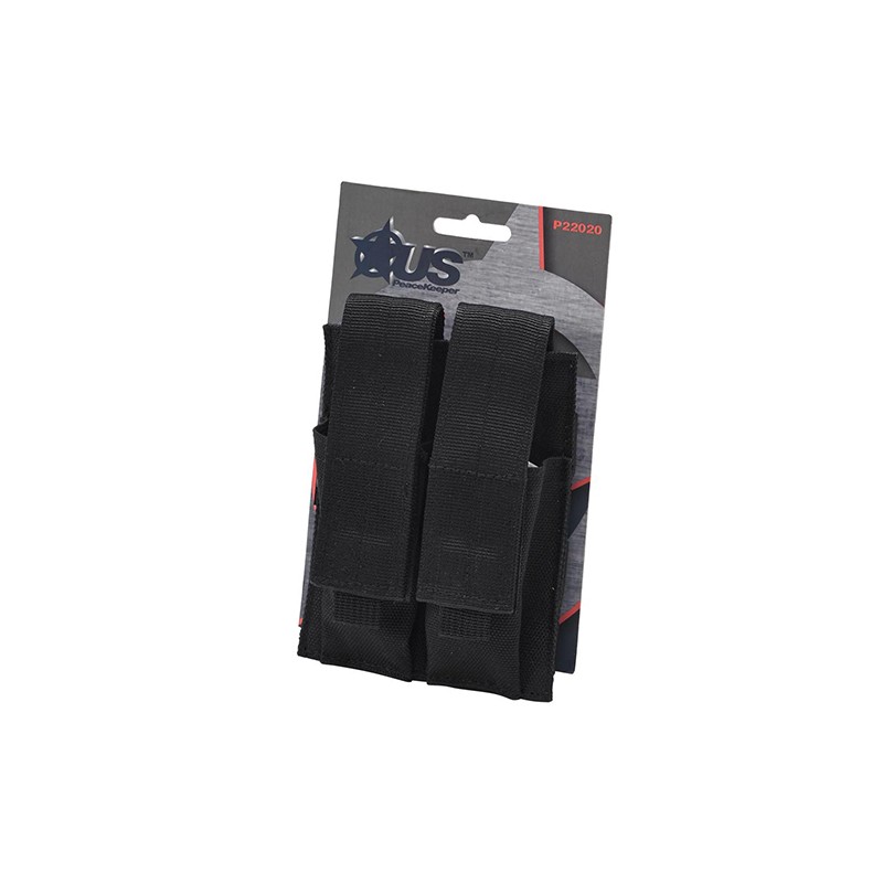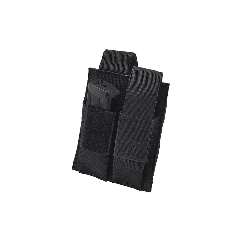 The universal design of this double magazine pouch accommodates most pistol magazines and folding knives.