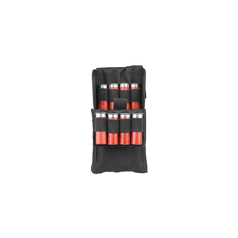 - The shotshell pouch can be quickly opened by pulling the tab on the top flap up and pulling the front panel down revealing all 25 shotgun shells