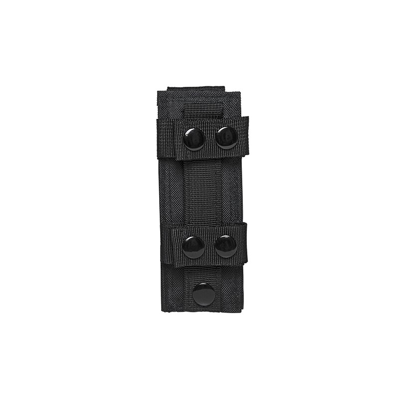 - The pouch features multiple MOLLE straps (both vertical and horizontal) with metal button snaps on the back, to mount onto MOLLE compatible gear in the standard vertical or even the horizontal positions.