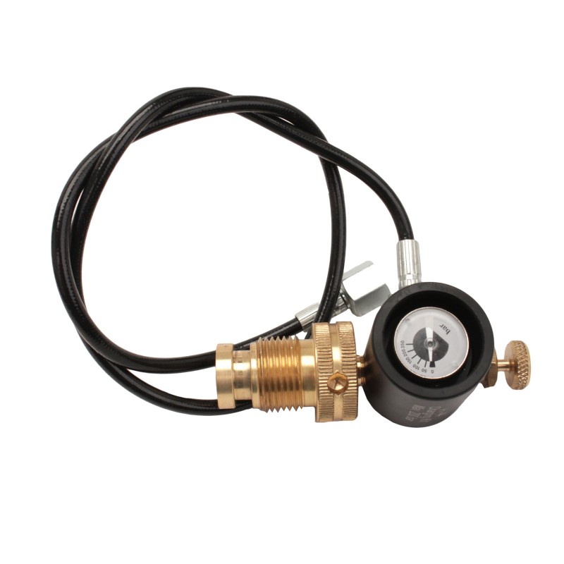 Filling kit from Hatsan that fits Hatsan's PCP rifle. Mounts directly to 200 or 300 bar cylinders which are purchased separately. Comes complete with pressure gauge, a particulate filter, hose and coupling.