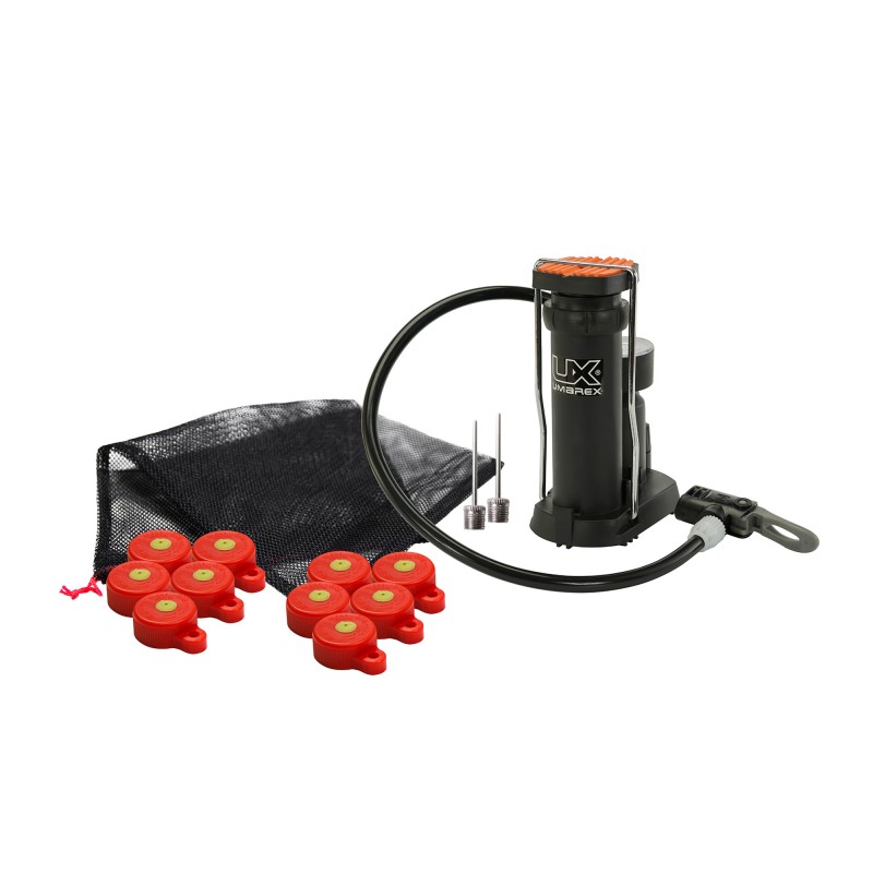 Umarex USA Big Blast Cap Target Inflator is a fun way to use a non-explosive target that merely operates by air pressure. With a Big Blast Cap you can pump air into your plastic bottle and it is recommend to pump up to 80 psi depending on the weather and size of the bottle. The pressurized air immediately disperses to normalcy creating a "boom" as the air molecules rush out into the normal atmospheric pressure. This model includes a foot pump, 10 red bottle caps, two compatible air pump needles, one mesh drawstring bag and tie string.