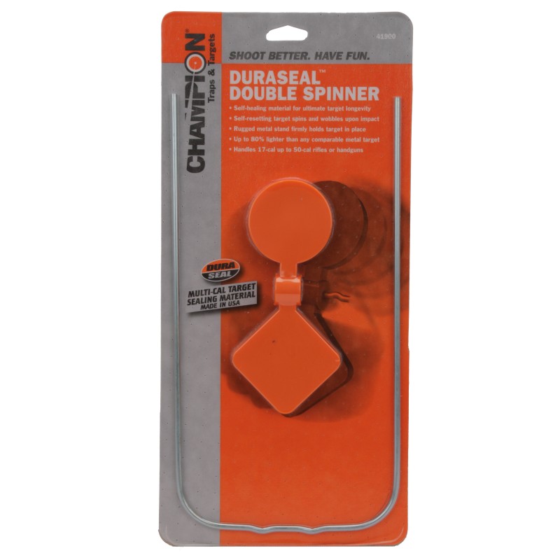 This durable Spinning Double Target is now available in Champion's wire ground mount. Just like the rest of our existing DuraSeal line, this target is easy to use and provides hours of target practice. DuraSeal is constructed of a non-metal, self-sealing material that absorbs hundreds of rounds from even the largest caliber rifles and handguns and still keeps its shape. Weighing 80% less than metal targets, these auto-resetting targets let bullets pass through with minimal damageprolonging the life of the target.
