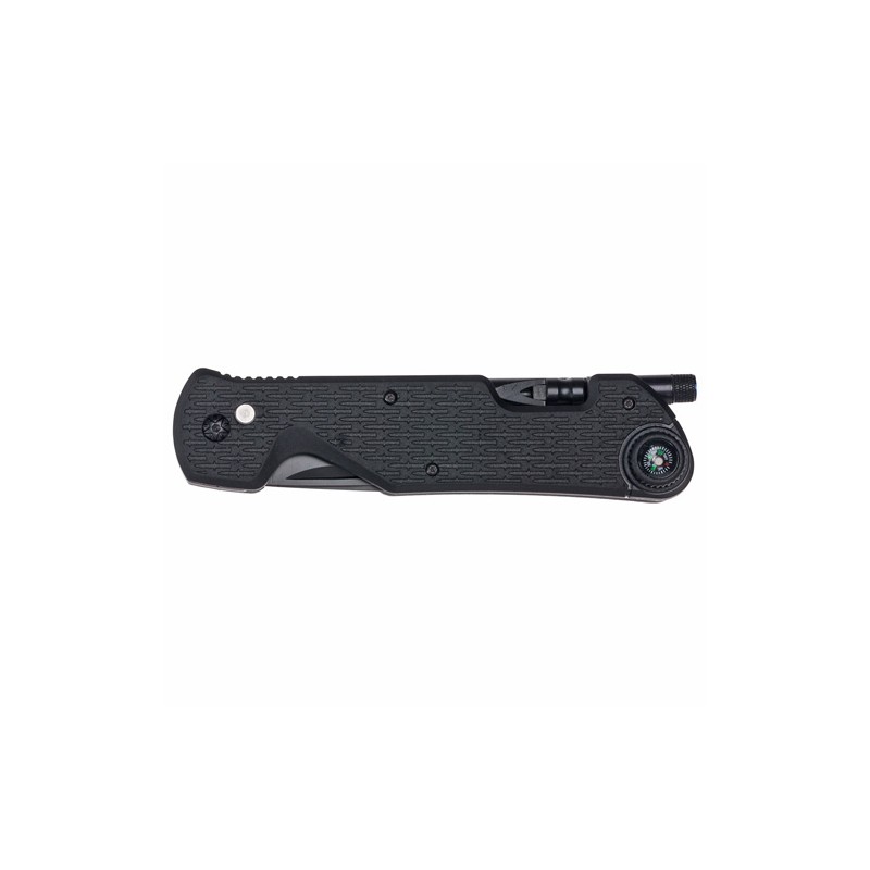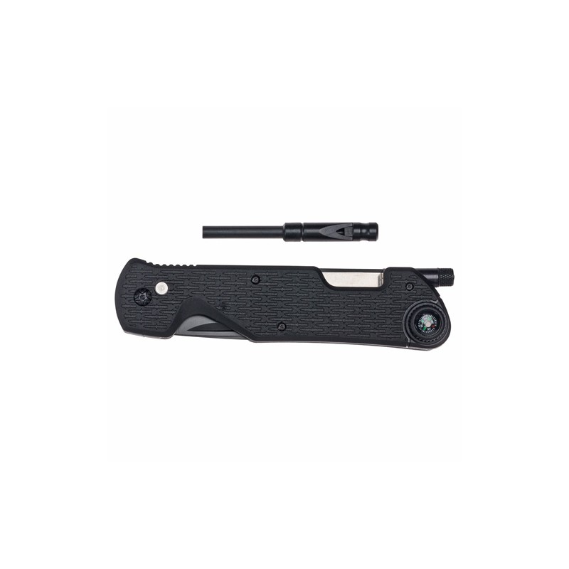 The Camillus Trekus Multi Tool is versatile enough to handle practically any situation. Titanium bonded steel blade. Ergonomic non-slip grip with bayonet accents. Features a 4.25" drop point blade, a 4.25" saw, 4.5" fillet knife, compass, firestarter, and whistle.