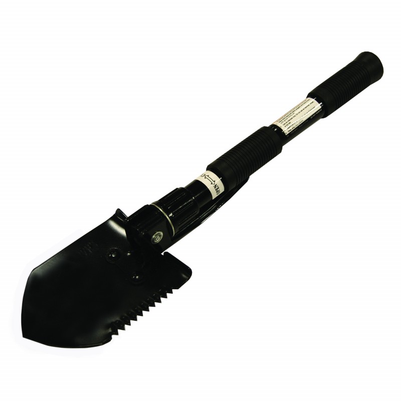 - Shovel blade with serrated edge; screw-on rubber handle for a good grip in rain and wind