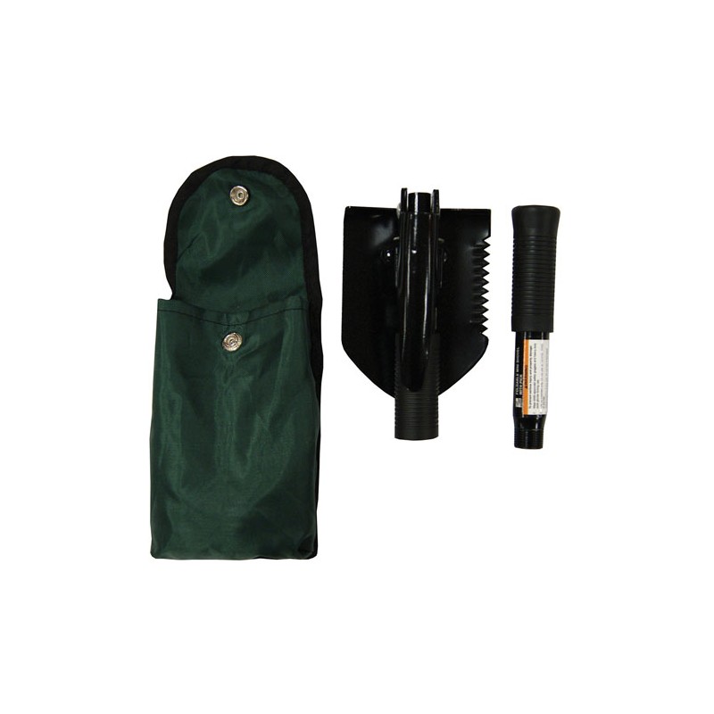 An essential tool for backpacking, camping, and hunting, the U-Dig-It Field Shovel from UST can be used as a shovel and converted quickly into a pick for digging a fire pit. The serrated edge on the shovel blade provides excellent cutting power, and it has a screw-on rubber handle for a good grip even in adverse weather conditions. Constructed of stainless steel, it has a black oxide coating for rust resistance. It comes with a durable nylon storage bag for safe travel and storage.