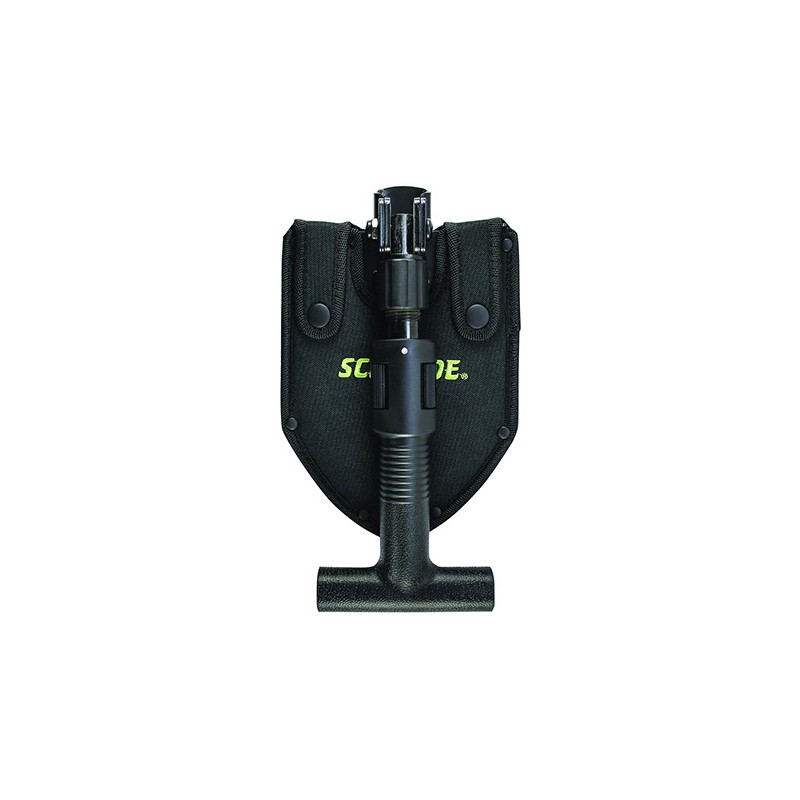 The Schrade Telescoping Folding Shovel features a fast and smooth collapsible polypropylene handle with an aluminum inner tube for added strength and durability. The sharpened spade folds back for compact, safe carry and the telescoping handle extends to up to 19" in length. It's lightweight and packable for back-country camping and hiking, comes with a nylon belt sheath.