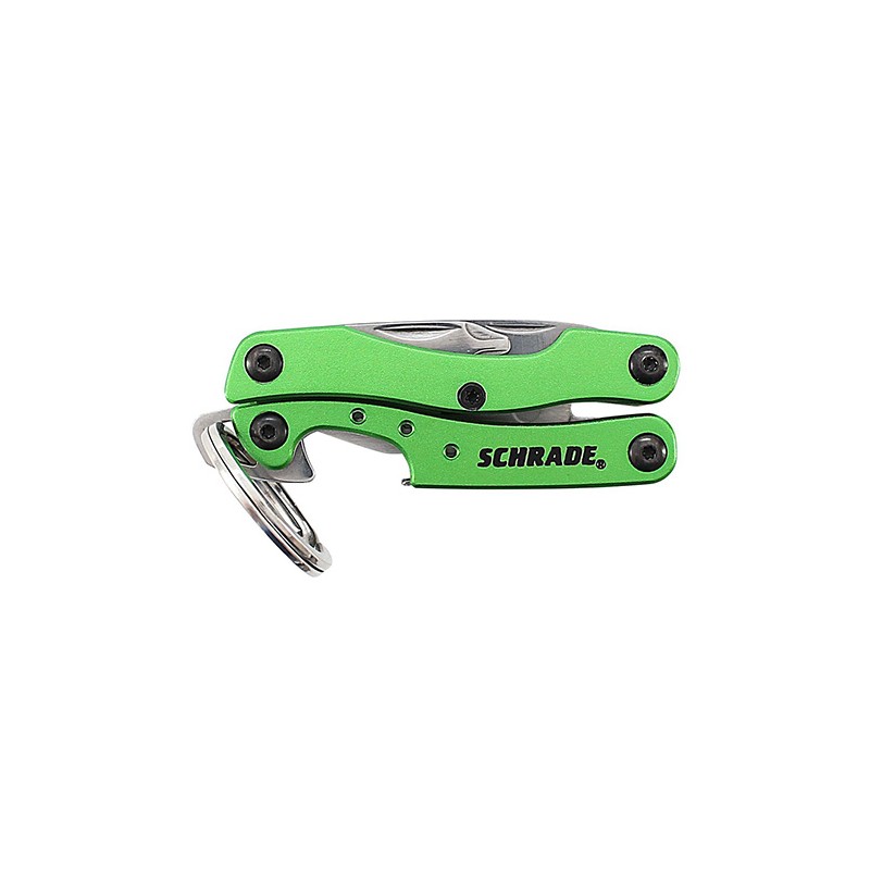 The legacy of Schrade knives and tools, which are proudly produced by BTI Tools, is built on fine craftsmanship, quality and dependability. Their expansive line consists of assisted opening, folding and fixed blade knives, as well various multi-tools and accessories in an effort to offer something for every need and every job. This model, the ST12, features a green stainless steel handle, tools in a grey finish and a keychain lanyard for a convenient carry option.